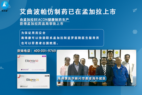 碧康制药生产的Elbonix是该药在全球的首仿药,也是迄今为止唯一获得政府监管机构批准合法生产的仿制药。价格经济,效果显著,安全性高,为广大患者带来福音。孟加拉艾曲波帕仿制药未在国内上市。代购海外药品,在国内直接买卖是违法的。为保证用药安全,请患者谨慎选择!更多请咨询海得康医学顾问:4000019769,或加微信:15600654560。